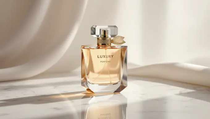 “Luxury perfume bottle on white marble surface, soft natural light, elegant mood, minimal props, premium product photography”